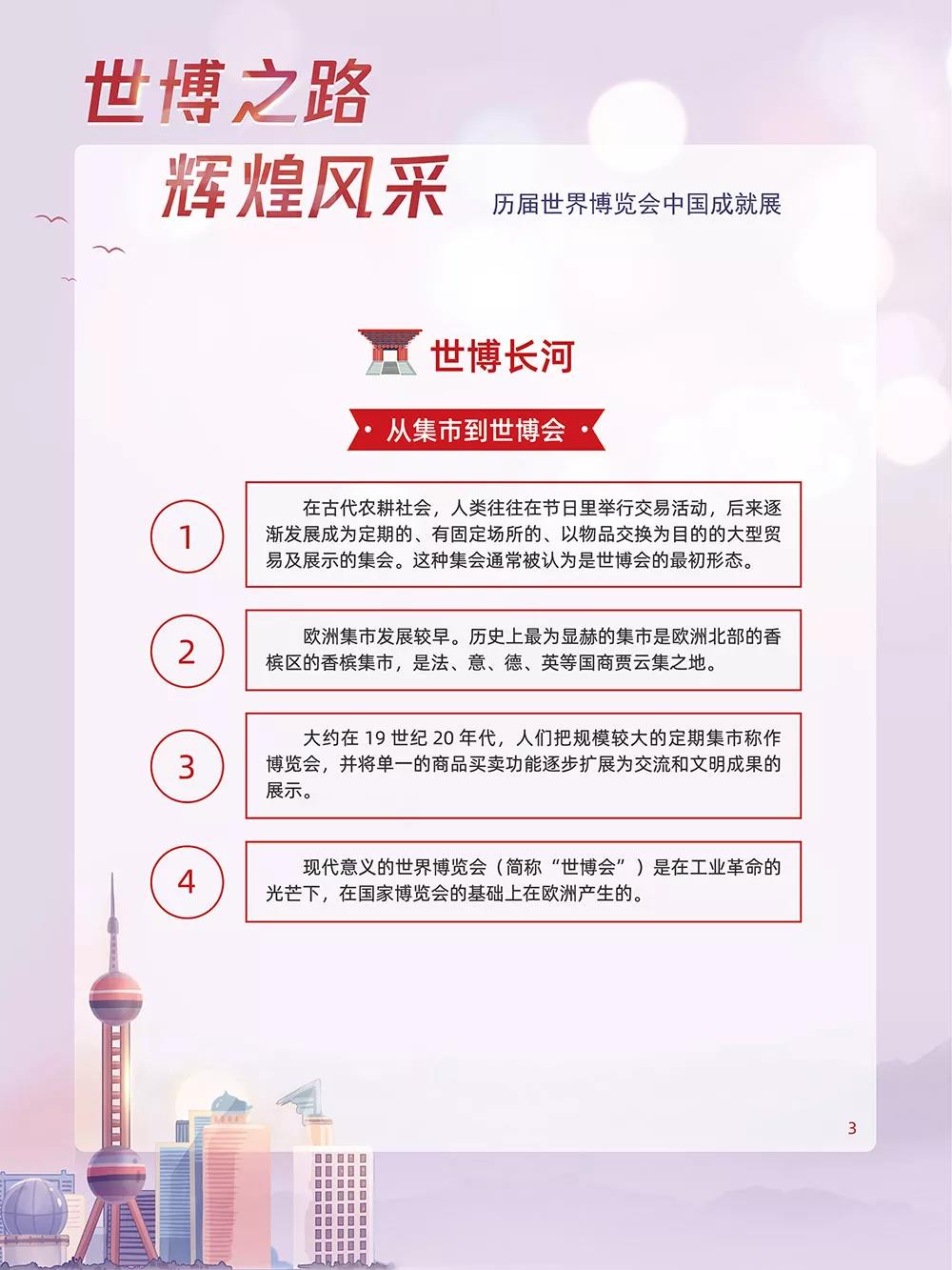 世博会是一项由主办国政府组织或政府委托有关部门举办的有较大影响和悠久历史的国际性博览活动,至今已有百余年的历史。世博会分为两种形式,一种是综合性世博会,另一种是专业性世博会。世博会是一个富有特色的讲坛,它鼓励人类发挥创造性和主动参与性。把科学性和情感结合起来,将有助于人类发展的新概念、新观念、新技术展现在世人面前。其特点是举办时间长、展出规模大、参展国家多、影响深远。因此,世博会被誉为世界经济、科技、文化的“奥林匹克盛会”。