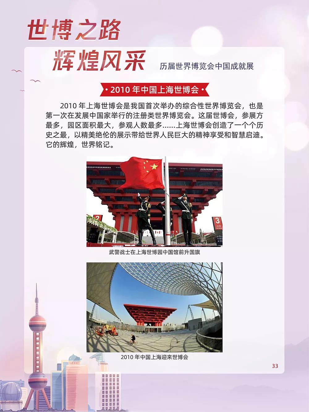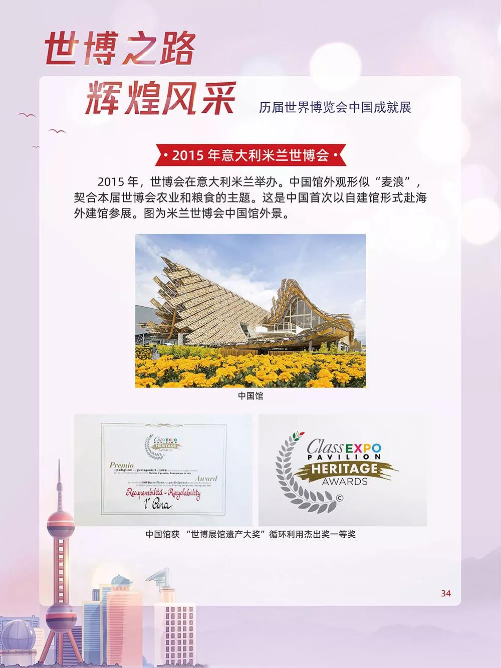 世博会上各个国家的展馆是记录一个国家发展和进步的“书签”。历史上亮相的中国馆,在不同的历史背景条件下,以建筑、景观和室内展厅的载体与方式,一次次演绎和定格着东方大国的国际视觉形象,传播着关于中华文明的信息,也为完善世博格局与促进国际交流作出自己的贡献,留下了中华民族独特的世博轨迹。