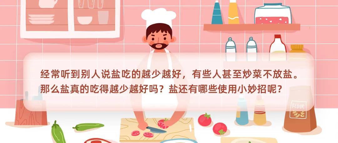 此外,盐吃得过少,钠离子摄入量不足,会导致体内的酸碱度不平衡,肠胃消化液的分泌受到影响,胃蛋白酶的作用减弱,会让人食欲大降,消化不良。久而久之,会引发胃肠疾病。由此可见,盐的摄入不是越少越好,日常饮食更不能禁盐。《中国居民膳食指南》推荐成年人一天盐的摄入量应小于6克,其中2克盐是零食等所包含的隐形盐,炒菜用盐量不要超过4克。世界卫生组织(WHO)建议的食盐摄入量更低——最多不超过5克盐,包括饭菜、零食等所含的盐量。盐吃得过多或过少都有害身体健康,会引发多种疾病。其实,只要我们提高认识,努力调整不良饮食习惯,就能保持适当的“度”,正确掌控食盐的摄入量。