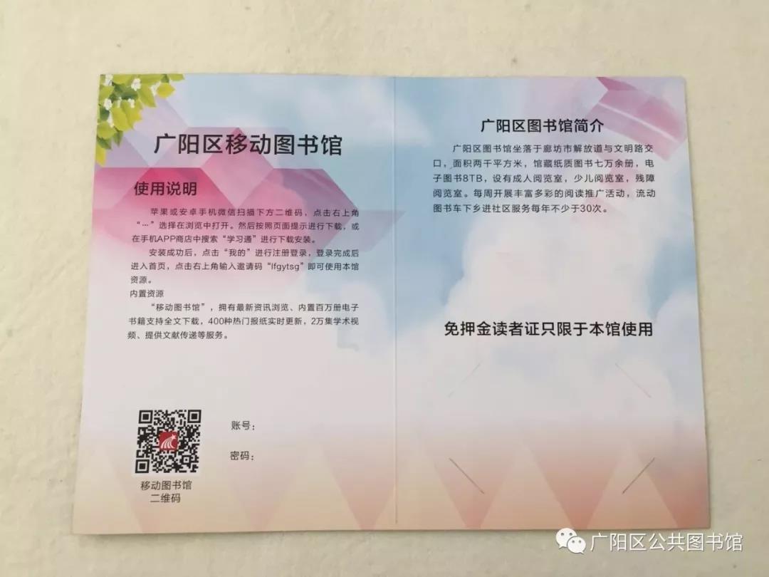 广阳区图书馆定于2018年4月28日(星期六)上午9点,在文明路与解放道交口,开展一次世界读书日阅读推广活动。活动期间将发放一些圆珠笔和便签纸等小纪念品。还将现场发放1000个数字图书馆微信二维码,读者可通过手机或电脑等终端,阅读广阳馆的数字图书资源。广阳区数字移动图书馆超过100万册数字图书免费等您阅读。望读者和市民,早做安排,光临此次阅读推广活动。
