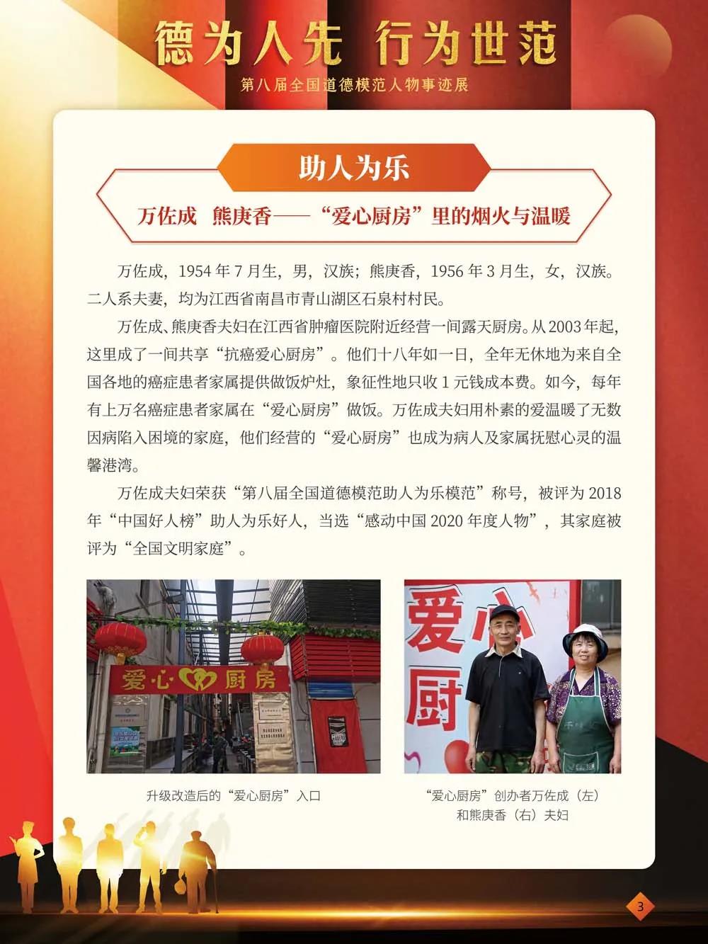 全国道德模范平均每两年评选一次,是新中国成立以来规模最大、规格最高、选拔最广的道德模范评选,在9月20日——“公民道德日”这一天隆重揭晓。一个个闪耀的名字刻写了伟大时代的凡人善举,一串串感人的事迹彰显着推进社会前进的精神力量。值第八届全国道德模范人物事迹揭晓之际,我们特策划了“德为人先,行为世范——第八届全国道德模范人物事迹展”,展览共分为以下五个部分进行展示:助人为乐篇、见义勇为篇、诚实守信篇、敬业奉献篇、孝老爱亲篇。