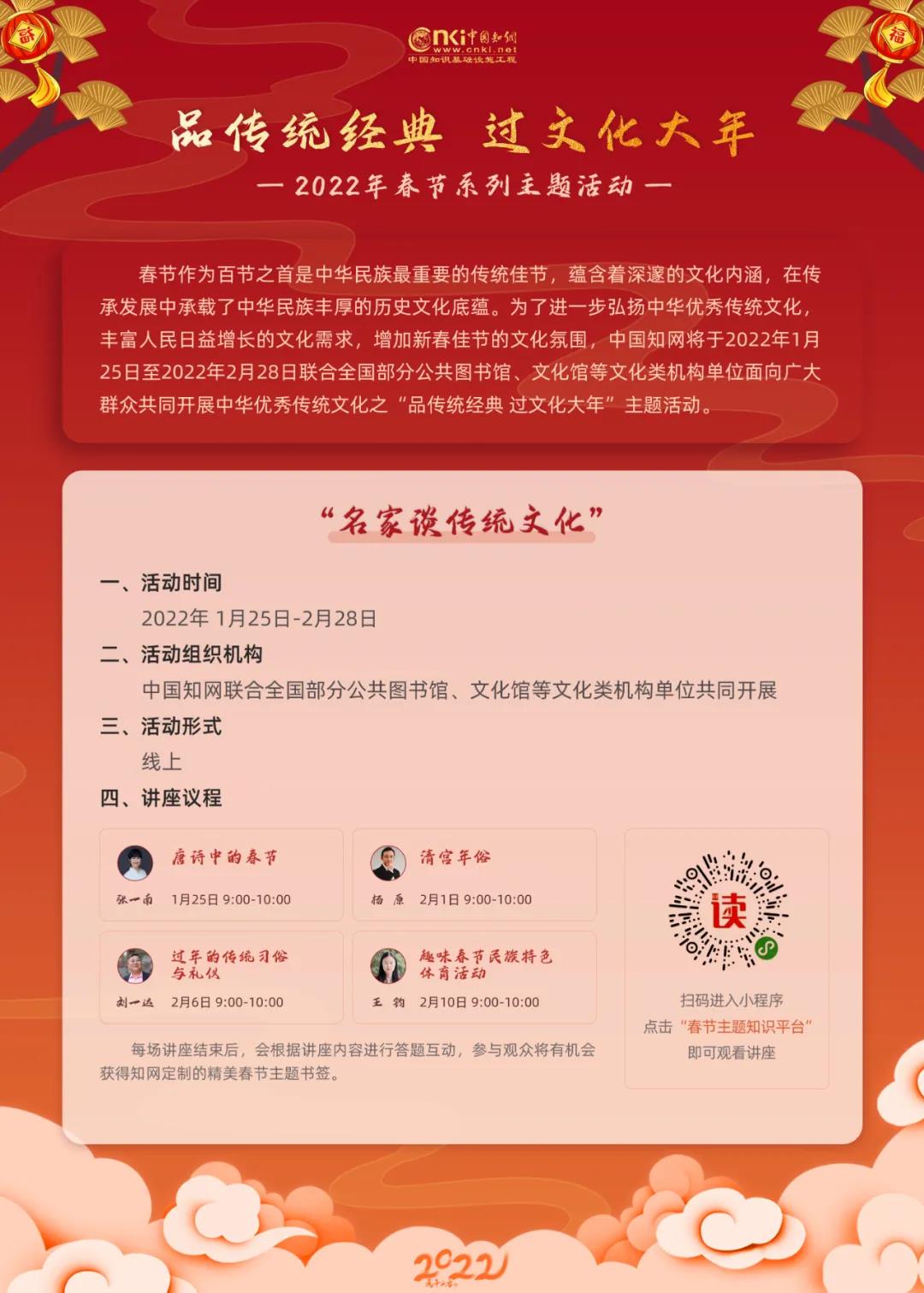 扫描下方二维码后,点击【中华优秀传统文化春节主题知识服务平台】进入【名家谈传统文化】板块即可观看系列春节讲座。