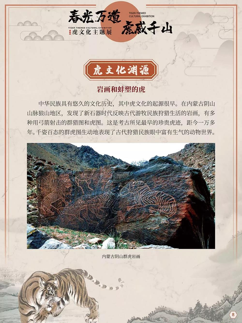 虎是最威猛的兽中之王,古称“山君”或“圣兽”。自“天下第一龙虎”蚌塑图案发掘出土,虎文化在中华大地上已延续了六七千年。然而“龙虎”一直以来的并称,在一定程度上遮蔽了内涵丰富的虎文化,使其长久以来隐没不闻。值此壬寅虎年到来之际,本展览梳理了从虎图腾神话、白虎星宿崇拜、到崇虎习俗、伏虎故事,乃至虎典、虎谚等文化现象,为您揭示虎头鞋、虎头帽以及布老虎等生活中随处可见而又不自知的文化深层寓意。