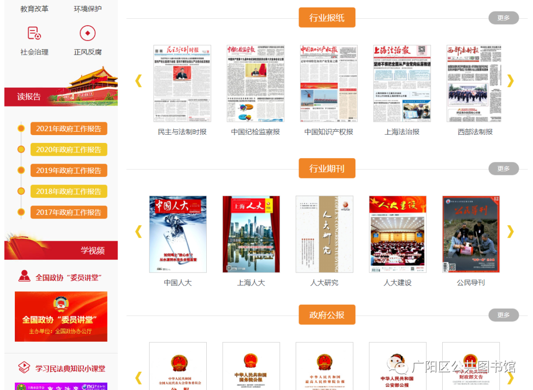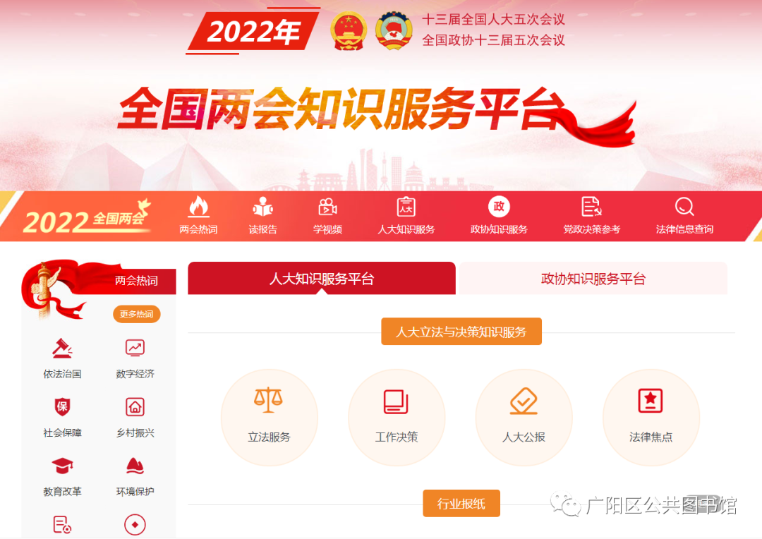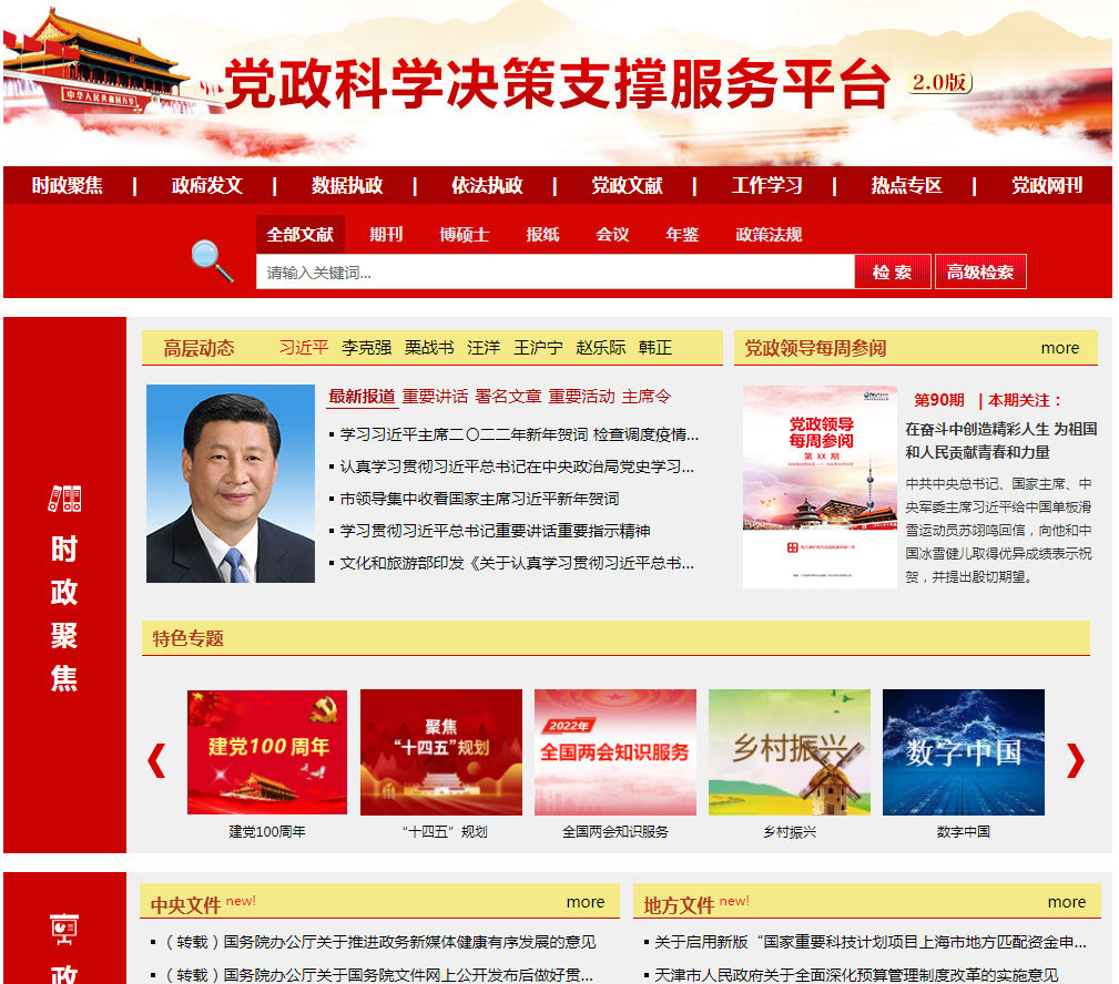涵盖“两会热词”“读报告”“学视频”“人大知识服务”“政协知识服务”“党政决策参考”“法律信息查询”七大模块,提供期刊、报纸、法规、公报、案例、视频等多种形式的信息,支持智能化信息检索。