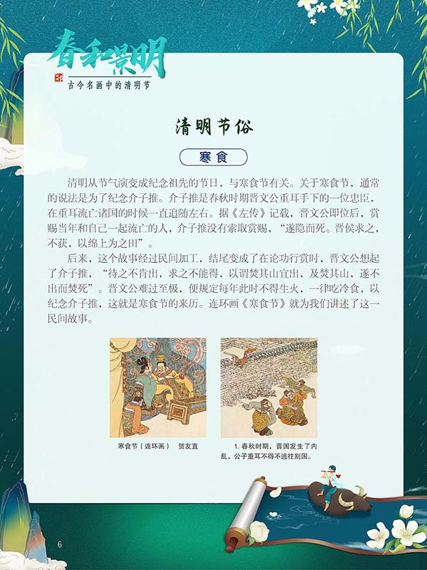 提到清明节,很多人首先想到的是扫墓祭祖、缅怀故人,认为这是一个令人伤感的时节。但其实,清明时节,气候转暖,气清景明,古人除了在此时祭奠逝者,还会开展集体踏青、折柳、戴柳、射柳、斗鸡、放风筝、打秋千、蹴鞠等丰富多彩的人文活动。可以说,清明节既有“清明时节雨纷纷,路上行人欲断魂”的伤感,也有“梨花风起正清明,游子寻春半出城”畅快游玩的快乐。