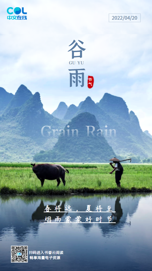 谷雨,二十四节气中的第六个节气,太阳到达黄经30°。我国古代将谷雨分为三候:“一候萍始生;二候呜鸠拂其羽;三候戴任降于桑。”“谷雨收寒,茶烟飏晓,又是牡丹时候。”此时节,杨花飞舞,柳絮飘扬;牡丹吐蕊,百谷茁长,正是万物灵动的大好时光。愿你我都能跟上春天的脚步,拥抱最好的时光。春天的诗本书精选了陈春阳不同时期创作的诗歌,如《春天的约会》《雨丝》《听水声》等。