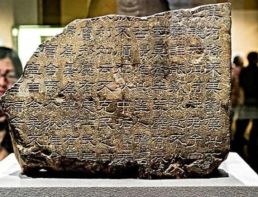 秦国的《石鼓文》,记录当年秦景公的事迹,全篇七百多个字,全部刻在石头上,被称为“天下第一石刻”。《石鼓文》上的字,是大篆。大篆是西周的官方字体,各种青铜器上的铭文,都是大篆。现在普遍公认,大篆这种字体已经摆脱象形的束缚,打下了方块字的基础,它把汉字系统化了。