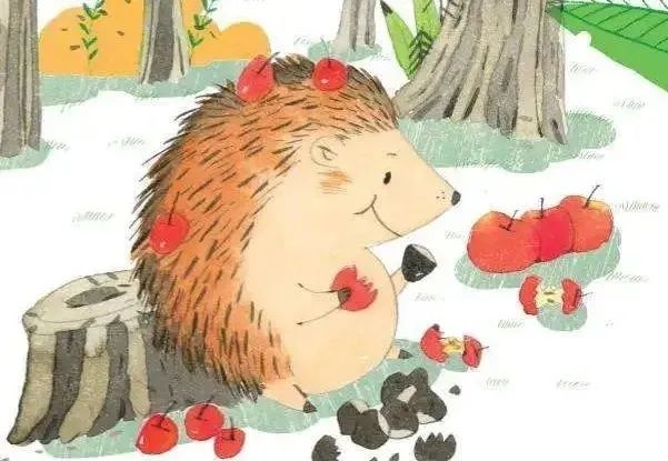 小刺猬来到一个果园,他看见果树上结满了又大又红的果实,好像挂了一树的红灯笼。他“噌噌噌”爬上树拽下一个来,闻了闻好香,咬一口,好甜啊!于是小刺猬摘了好多果子,又大又红的果实落了一地。看着满地的果子,小刺猬犯愁了,该怎么拿回去呢?有了!他在地上打了几个滚,红红的果实便扎了满身。小刺猬高高兴兴地背着果实回了家。小刺猬的爸爸、妈妈一看,高兴地说:“这才是我们最爱吃的苹果呢。”