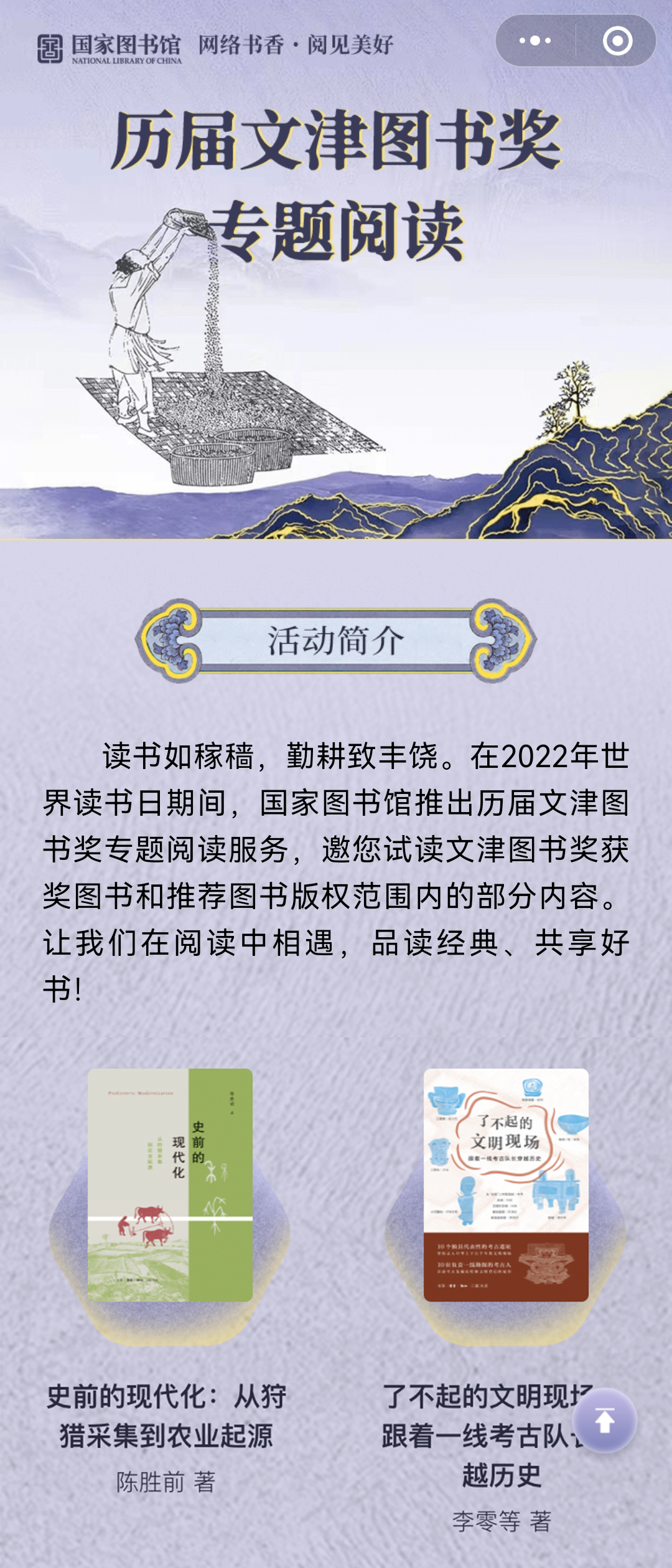 历届文津图书奖专题阅读推广活动