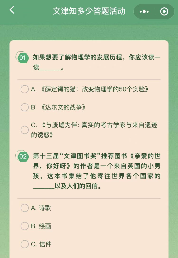 “文津知多少”答题活动共设有两期
