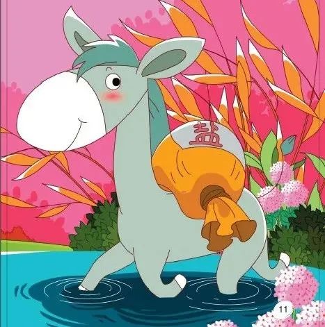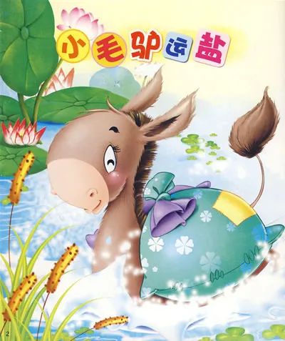 妈妈不放心,有很多话想交待给小驴。可是小驴还没有听完妈妈的话,就一溜烟地跑出了农场。小驴刚一出门,就忘记了妈妈的话,驮着一袋盐,像往常一样,边走边玩。在经过农场边的小河时,小驴低头和水里的金鱼打招呼,不料脚底一滑,一下子跌进了水里,背上驮着的盐遇水之后,化掉了一大半。
