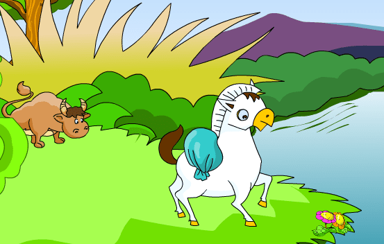 小驴站起身,顿时感觉身上的袋子轻多了,心里别提有多高兴了,心想:“原来运货的时候在水里洗个澡,路上就不会那么累了。我真是太聪明了,妈妈运了这么多年货物,一定没发现这一点!”