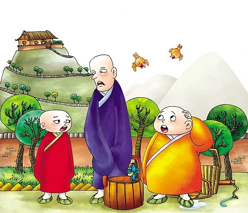 他就要小和尚跟他一起去抬水,于是两个人抬着一只水桶去山下取水,抬水的时候水桶必须放在扁担的中央,这样挑水谁都不吃亏,两个和尚心里都舒服了,日子过的还算融洽。