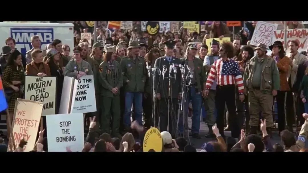 阿甘从越南回来后,无意中被卷入到美国群众反对越战的大游行。