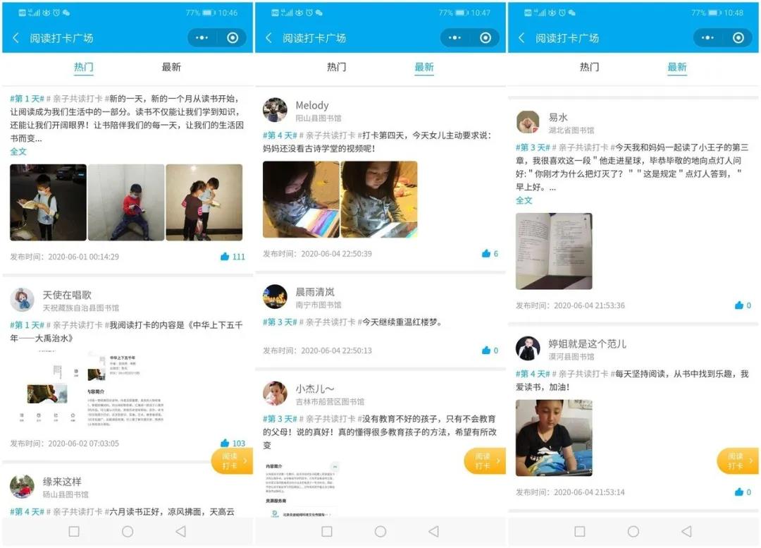 缤纷六月,全国各界别图书馆开展书中风景“读”好——亲子共读打卡挑战赛活动,通过家庭共读平台推荐的20本好书,并坚持打卡14天即有机会冲刺所在地区图书馆和全国TOP排行榜。
