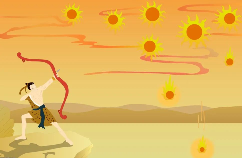 尧统治的时候,有十个太阳一同出来,花草树木枯死。