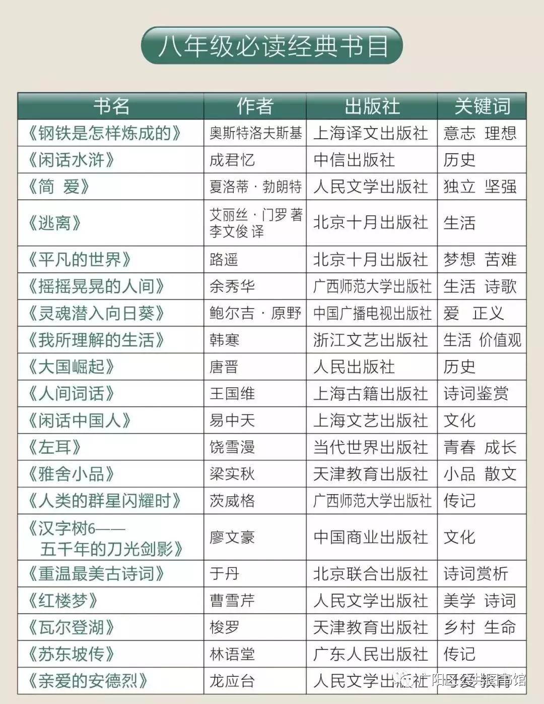 未来,阅读是一切学科的最重要基础。根据课标及各年级教材、学生的智力与认知发展情况,我们精心整理了这份《中小学必读经典书目》,帮助孩子在课余时间利用碎片化时间阅读经典、启迪心智。