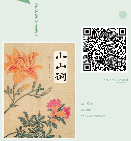 “其淡语皆有味,浅语皆有致,求之两宋,实罕其匹”。在端午这样一个雅致的节日里,实在是适合读一读这本在中国文学史上有着重要地位的《小山词》。