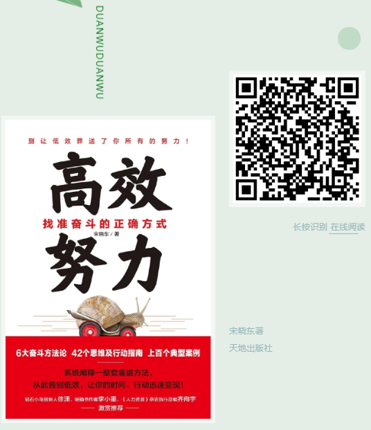 有了追求卓越的目标,如何努力,也是个大学问。这是一个人人都在追求自我实现的时代,也是一个人人都渴望成功却又倍感焦虑的时代。然而,有太多人每天都在重复着低品质的勤奋和无效的努力——虽然活得很累、很艰辛,却并没有取得太大的成就。这其中的一个重要原因,就是他们缺少有关奋斗方法论的知识。所谓奋斗方法论知识,其实就是走向成功的加速器,可以让我们在努力的过程中事半功倍。