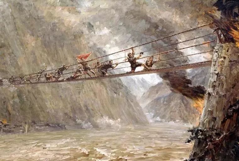 另一幅《飞夺泸定桥》的油画诞生时间更早,由中国第二代油画家刘国枢于1957年创作,现藏于中国人民革命军事博物馆。