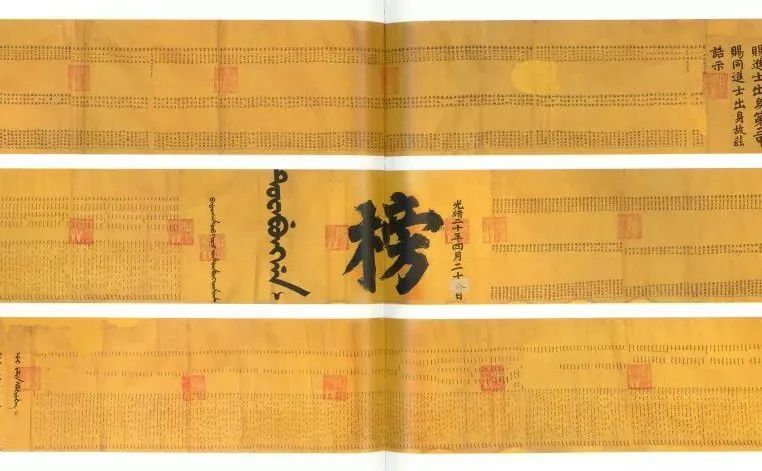 2005年《清代大金榜》是中国古代封建科举制度标志性的档案文献,是科举考试的最高级殿试的成绩榜。金榜分大金榜、小金榜两种。小金榜是大金榜的副本,呈至宫中供皇帝御览。大金榜则悬挂于宫墙外,告示天下。