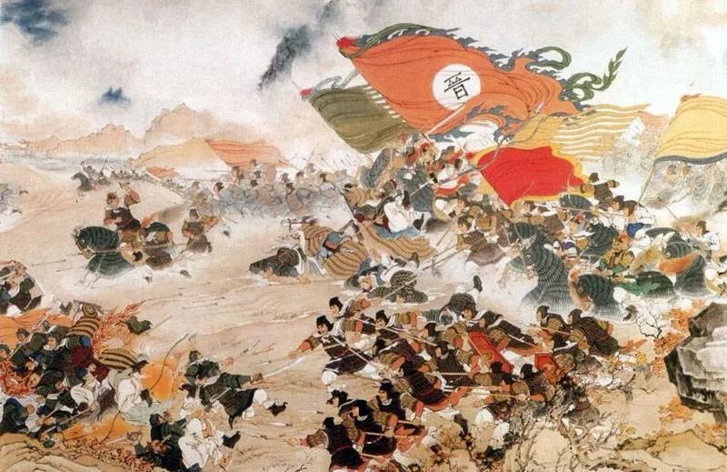 但是,苻坚没有料到此时秦军的士气低落,军营大乱,秦兵各个争先恐后,人马冲撞,乱成一团,怨声四起。这时指挥已经失灵,苻坚几次下令停止退却,但如潮水般撤退的人马已成溃败之势。