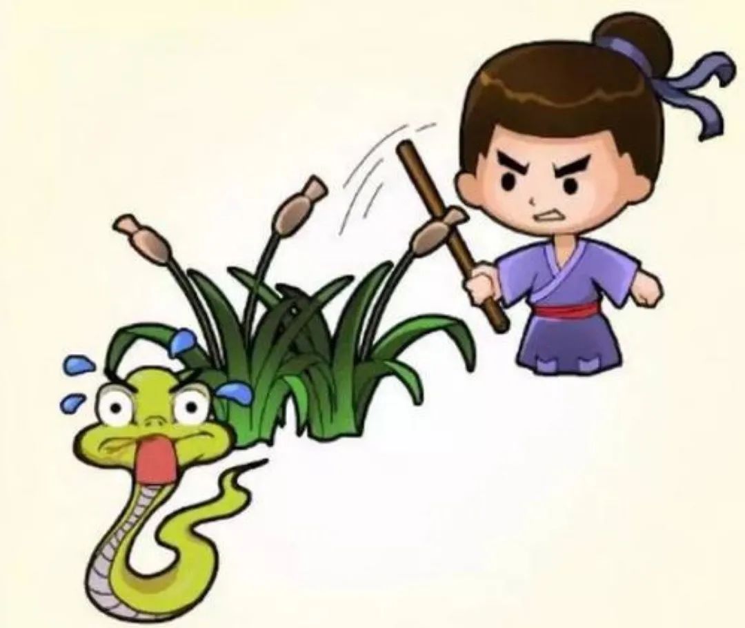 打草惊蛇:意为打在草上却惊动了蛇,借以比喻惩罚了甲而使乙有所警觉,多指因做事不谨慎、反使对方有所戒备。