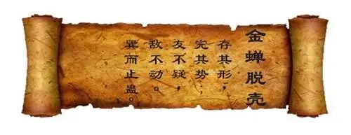 金蝉脱壳的故事本意是:寒蝉在蜕变时,本体脱离皮壳而走,只留下蝉蜕还挂在枝头。此计用于实战中,是指通过伪装摆脱敌人,撤退或转移,以实现我方的战略目标的谋略。稳住对方,撤退或转移,决不是惊慌失措,消极逃跑,而是保留形式,抽走内容,稳定对方,使自己脱离险境,达到己方的战略目标,己方常常可用巧妙分兵转移的机会出击另一部分敌人。