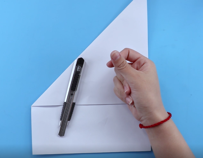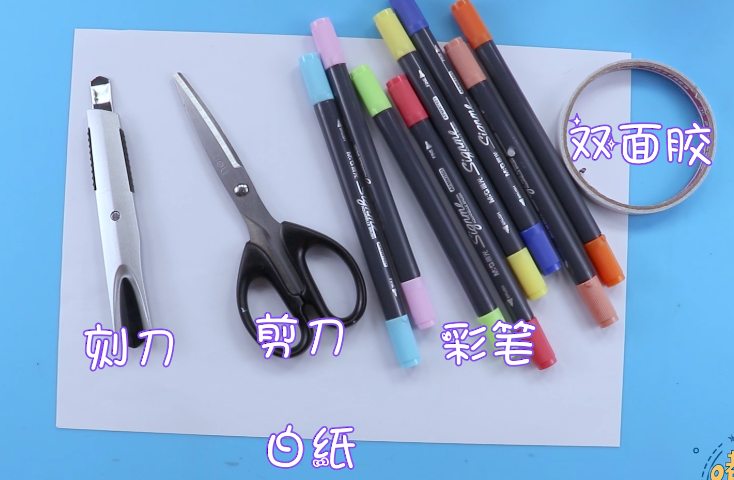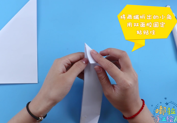 1将白纸折叠并用剪刀剪下多余的长方条,将剪下的长方条两端折出的小角用双面胶固定;