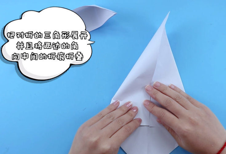 2将两边的角向中间的折痕折叠,折叠好的形状如图所示;