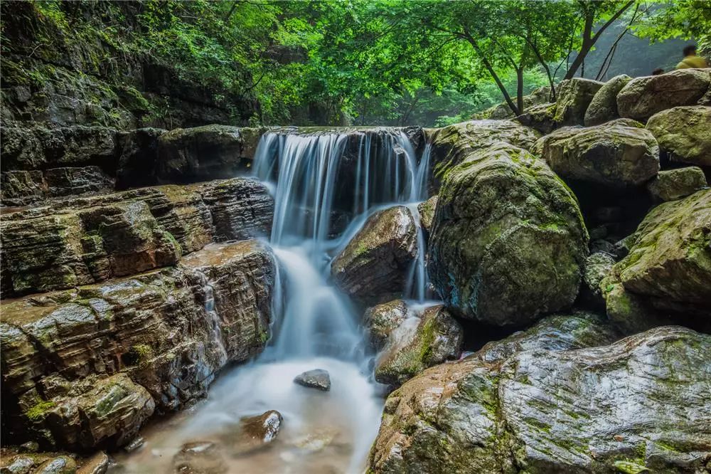 峡谷内山高谷深、奇峰座座、怪石遍布、万泉高悬、奔崖跌谷,其中白龙瀑高百余米,似银河洞悬,十分壮观。景区由大牌楼、天河瀑、水帘洞、宋朝穆桂英居住的穆柯寨等60多个景点组成,集“野、幽、静、奇、险、秀”为一体,人称“世外桃源”。