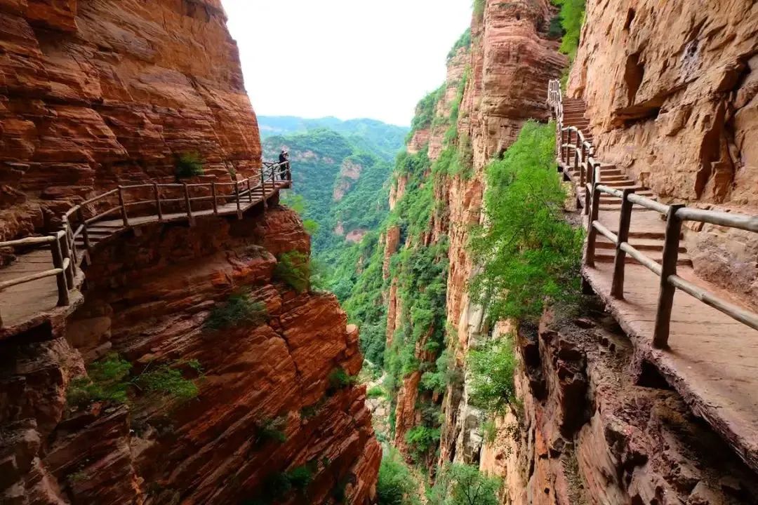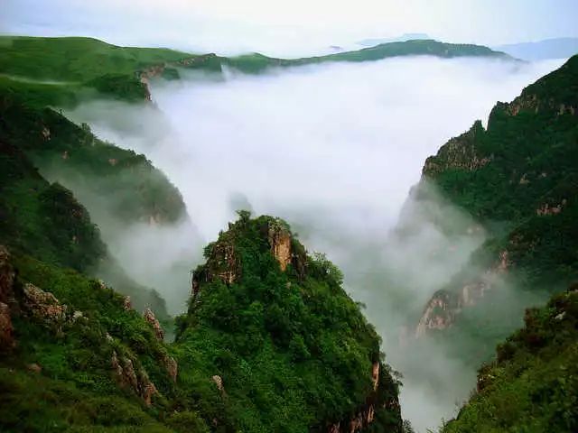 它蜿蜒曲折宛如九曲穿蚁地穿行在这条南北长达35公里的峡谷内。沿途奇峰叠起、怪崖悬空、层峦叠嶂、路曲谷幽,它是古商道,又是古战道,也是“太行八陉”之飞狐陉。
