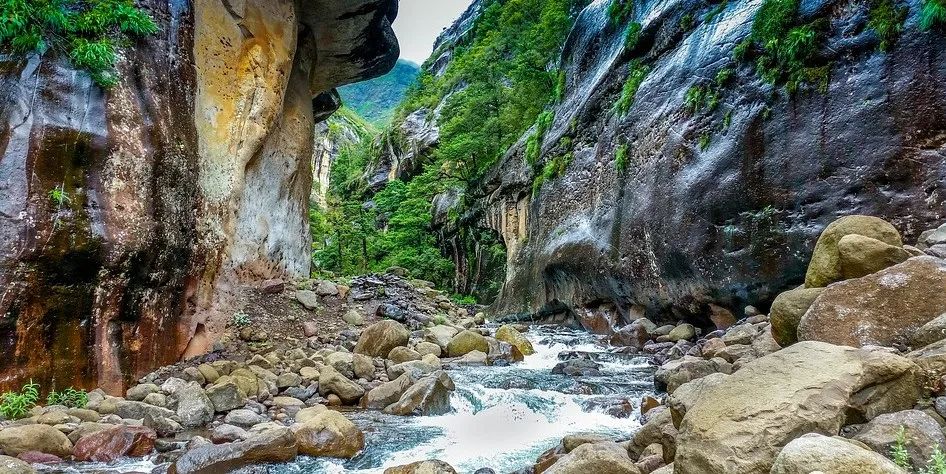 峡谷内森林茂盛、奇石耸立,绝壁万仞,山势雄奇,是罕见的岩溶型嶂谷地貌体系,其特有的地质地貌、动植物以及周围的生态环境,构成“雄、险、奇、幽”的天然百里画廊,堪称大自然的奇迹。