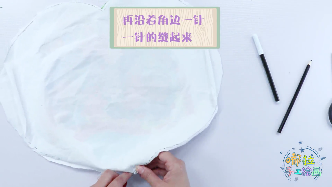 使用剪刀裁剪完毕后用针线缝起来