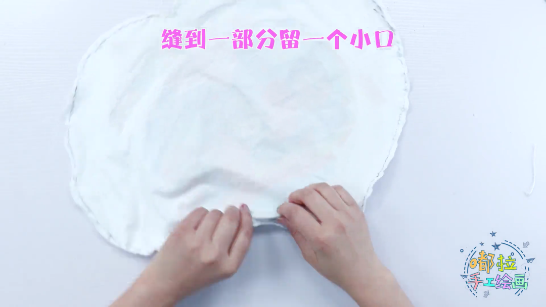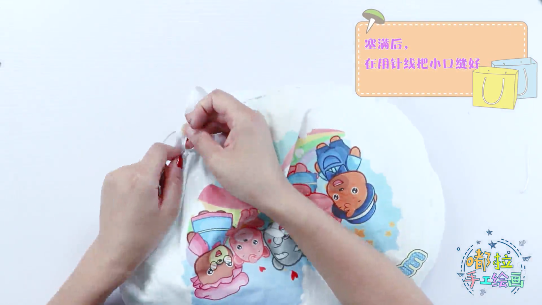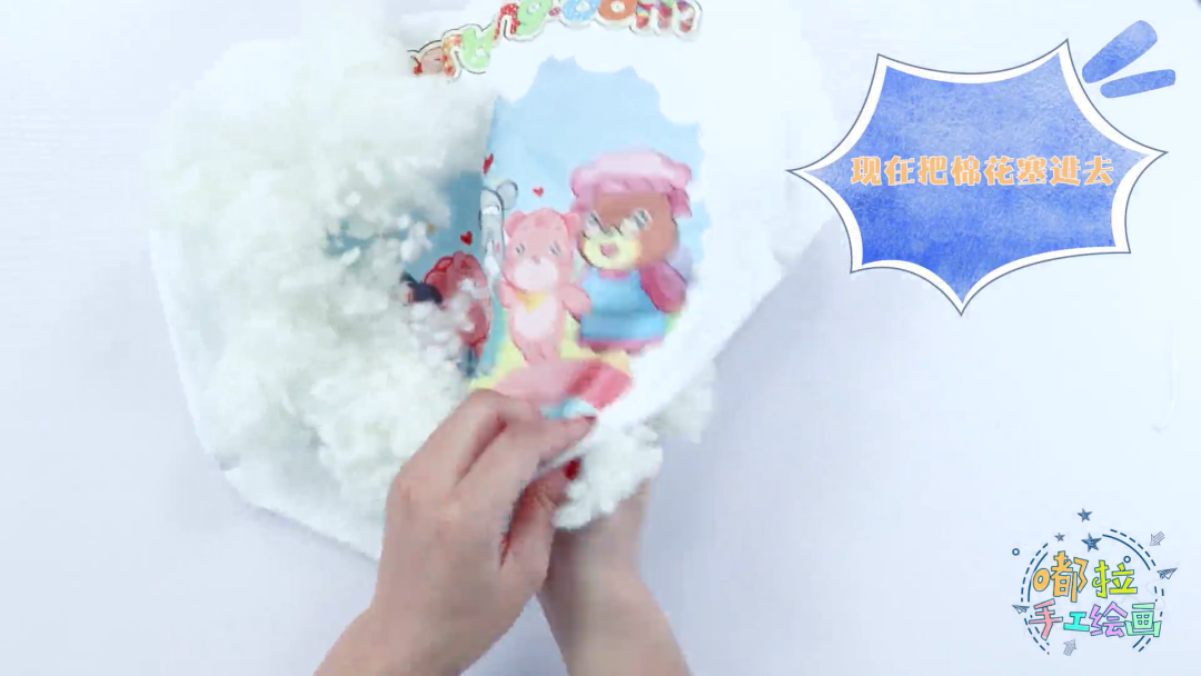 将抱枕翻面后塞入棉花