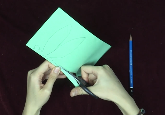 指尖上的镂空艺术剪纸——“蜻蜓”小荷才露尖尖角早有蜻蜓立上头剪纸,又叫刻纸,是一种镂空艺术,也是中国汉族最古老的民间艺术之一,其在视觉上给人以透空的感觉和独特的艺术享受。剪纸·蜻蜓NO.01 材料准备今天的课程所需要的工具有:剪刀、彩色纸、铅笔、橡皮。小朋友们在使用剪刀的时候一定要注意安全噢!NO.02 操作步骤首先将一张正方形彩纸对折然后跟着老师在彩纸上用铅笔画出蜻蜓的轮廓和花纹接着耐心地使用剪刀沿着蜻蜓轮廓剪下,就能够得到蜻蜓剪纸啦!