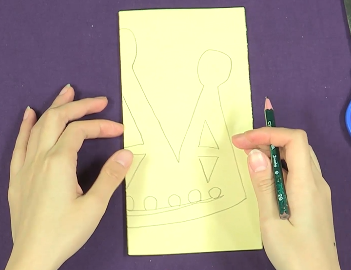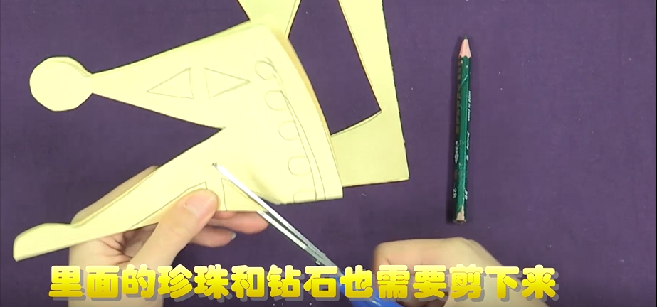 指尖上的镂空艺术剪纸·“皇冠”你想要拥有一顶属于自己的皇冠吗?只要动动手就可以完成哦!快准备好材料,一起剪出一顶皇冠吧!01 准备材料今天的课程需要用到的材料有剪刀、彩色纸、铅笔、橡皮。小朋友在使用剪刀的时候一定要注意安全哦!02 操作步骤首先 将一张彩色正方形纸对折在纸上画出皇冠一半的外形就像老师画的这样接着用剪刀沿着皇冠的轮廓剪皇冠上的珍珠和钻石也要剪哦!剪完之后就得到一个精致的皇冠啦!