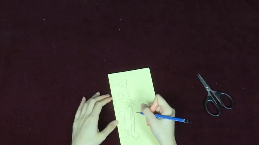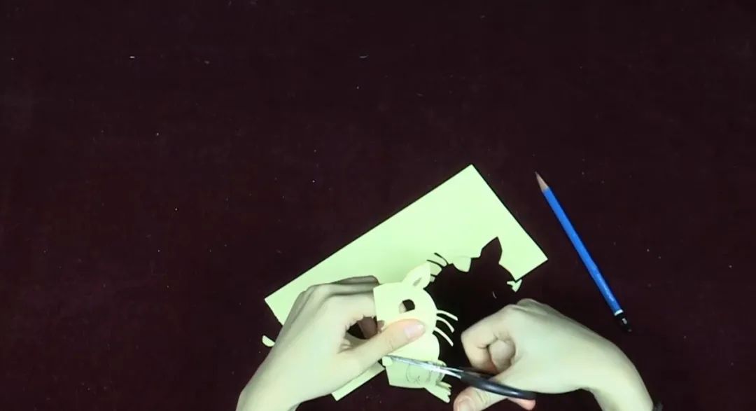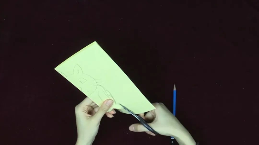3.画完之后,用剪刀沿着轮廓剪出猫的外形和嘴巴;