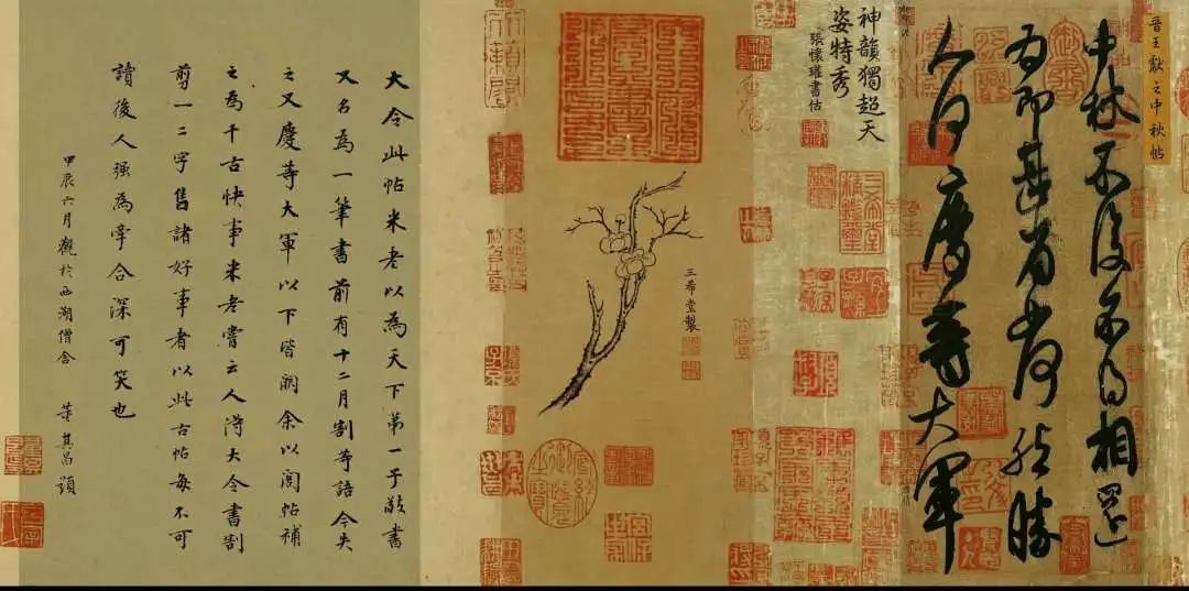 《中秋帖》与王羲之的《快雪时晴帖》、王珣的《伯远帖》合称“三希”。《中秋帖》原为五行三十二字,后被割去二行,现仅存三行二十二字。释文曰:中秋不复不得相还为即甚省如何然胜人何庆等大军。无款署,有明董其昌、项元汴,乾隆等人的鉴藏印跋。此帖因卷首有“中秋”二字而得名,是新中国成立后最早最重要的回归文物。