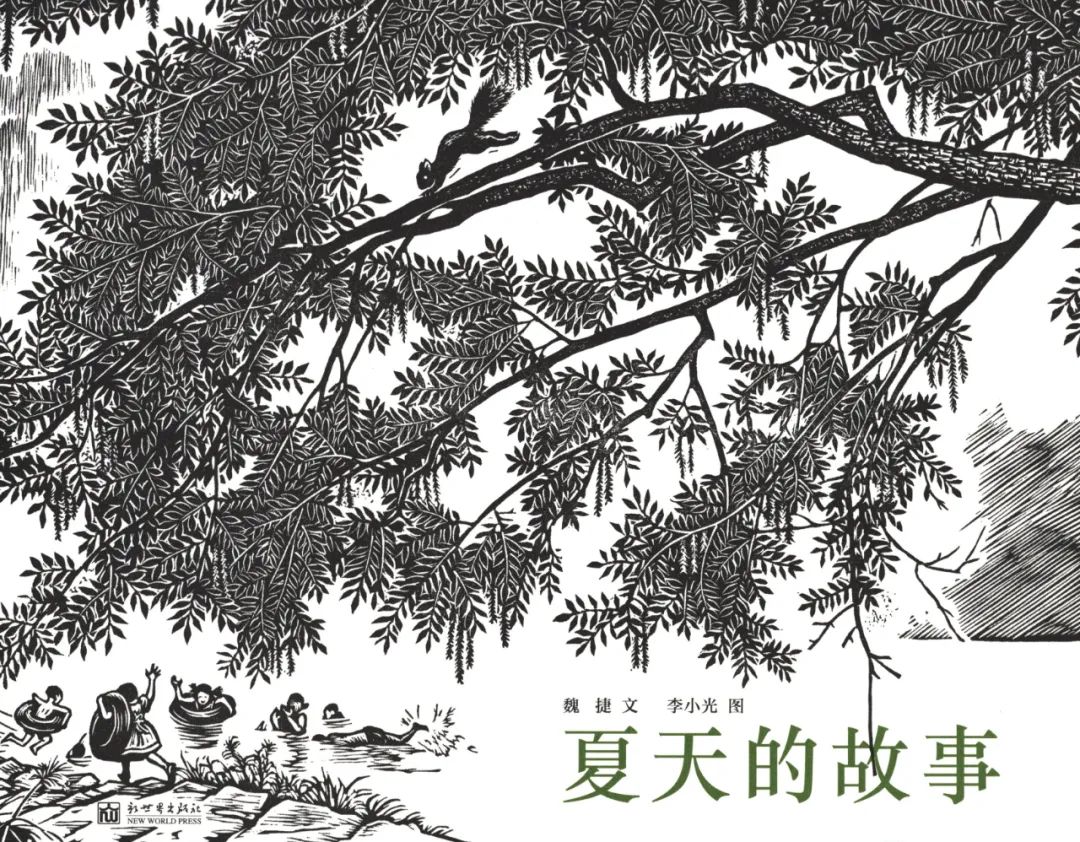 刚拿到《夏天的故事》绘本时,封面嬉戏的孩童,高大树木上正在跳跃的松鼠,自然色彩的字体,让我开始期待这里的故事。