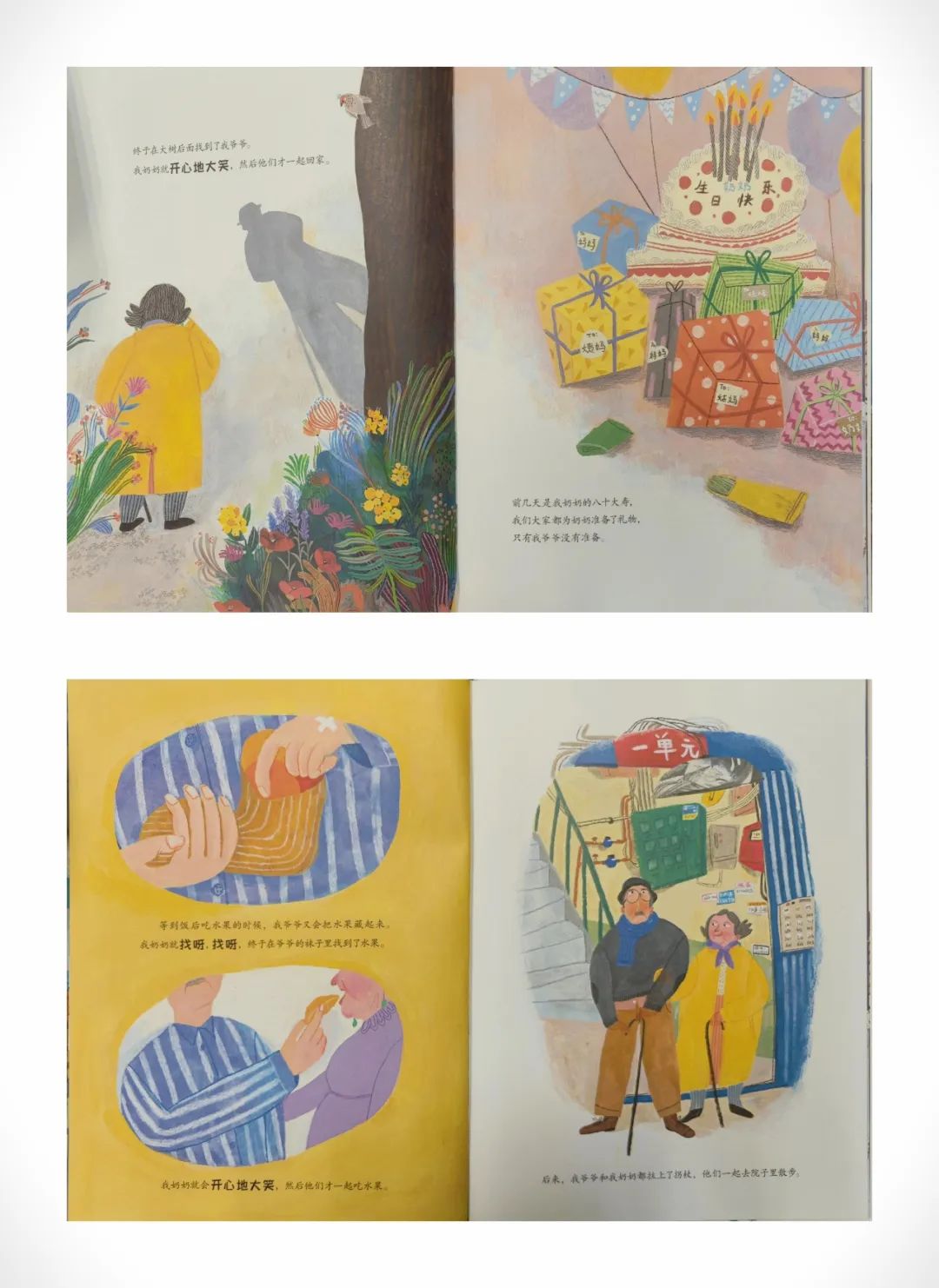 童真童趣的爷爷,为了逗奶奶开心,总是在奶奶找他吃饭、找他回家时,把自己藏起来,到奶奶找到时,奶奶便开心地大笑。即使在爷爷生病时,爷爷藏不了自己就藏水果,奶奶还是开心地大笑。