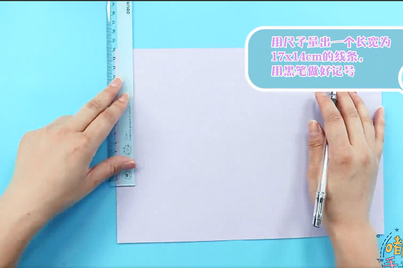 1、用尺子量出一个17×14cm的线条,用黑色笔做好记号。