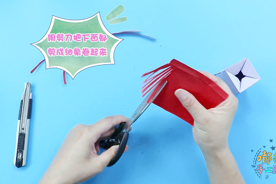 3、用剪刀把下面都剪出来细条形状。