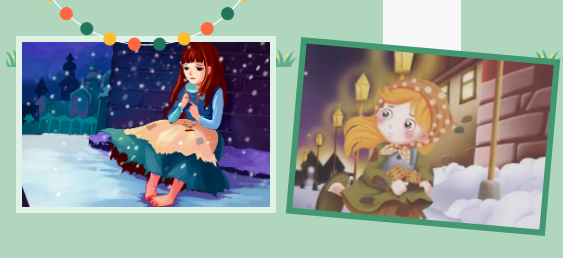 《卖火柴的小女孩》讲述的是一个在圣诞夜卖火柴的小女孩的悲惨命运。因为没有卖掉一根火柴,小女孩一天没有吃东西。她又冷又饿,她擦亮了第一根火柴,看见了温暖的火炉;她擦亮第二根火柴,看见了喷香的烤鹅;她擦亮了第三根火柴,看见了美丽的圣诞树;她擦亮第四根火柴,看到了久违的祖母。她害怕火柴熄灭,祖母就会和火炉、烧鹅、圣诞树一样消失不见,就擦亮了一整把火柴,想让祖母留在自己身边。最后小女孩嘴角带着微笑死去,没有人知道她在生前最后一刻看到的美好情景。