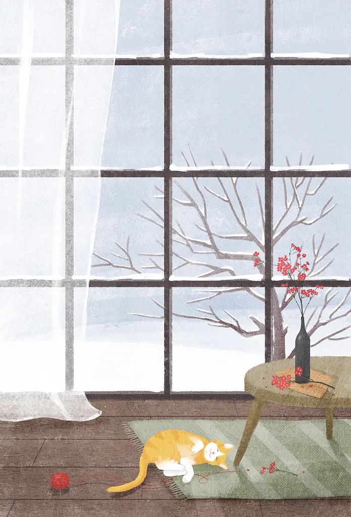 外面好冷屋里好暖,我要抱着我的猫窝在家里,才不出门。
