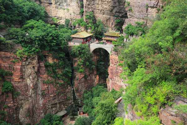 苍岩山,享有“五岳奇秀揽一山,太行群峰唯苍岩”的盛誉。电影《卧虎藏龙》在此拍摄取景,这座悬空寺,形如赵州桥敞肩拱式,是中国三大悬空寺之一。随着影片获得奥斯卡奖,使得苍岩山闻名于世,好莱坞大片《功夫之王》《木乃伊3》也曾来此取景。