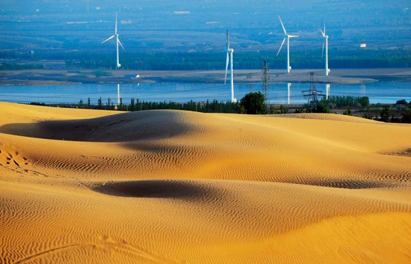 天漠还有个别称叫做“飞来的沙漠”。它的周边是草原、水库、河流,沙漠的成因至今仍是不解之谜,就像从天上掉下来的一样。在这里,戈壁、沙漠、湖泊、古烽火台以及山村中的老戏台构成了一道独特的风景线。