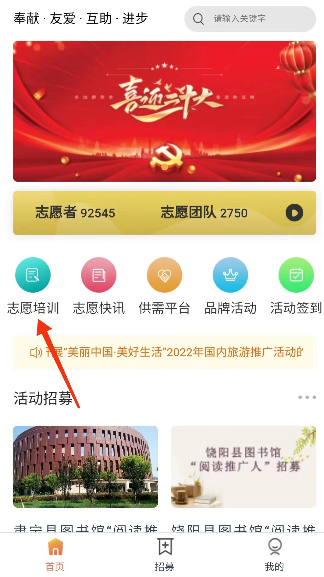 引领新风尚“大家读”——河北省全民阅读比赛已经在全省广泛开展。目前阅读推广人培训课程已在“河北省文化和旅游志愿服务”公众号上线,大家可以关注公众号,注册加入“广阳区公共图书馆阅读推广人志愿服务团队”,由于时间有限,请大家自行尽快完成阅读推广人志愿者在线培训课程。培训准备了5门课程,学完之后进行测试,测试合格后,自动生成资格证书。