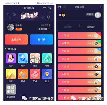 超星读书小程序目前提供文学、科学、诗词、地理、历史、算术、艺术、安全八大类题库,并提供“全能挑战”和“分类挑战”两种挑战形式。同时,又为读者提供“全网对战”、“好友PK”和“个人练习”三种挑战模式。