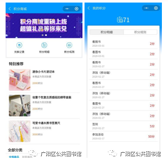 除了参与打卡等活动可以获得积分外,超星读书小程序设置了完善的积分服务体系和积分商城功能模块,目前该模块提供50余种可供设置的积分项及对应分值,如:登录、看书、看视频、听书、活动报名、上传作品、投票、点赞、学习打卡、添加书架等。同时,考虑到活动特性,该功能面向主办方完全开放,主办方可自行灵活设置积分项及分值。